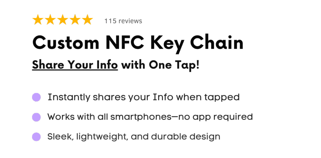 • No Charging Required: The Insatgran NFC Key Chain works without batteries or charging, ensuring it’s always ready for use.