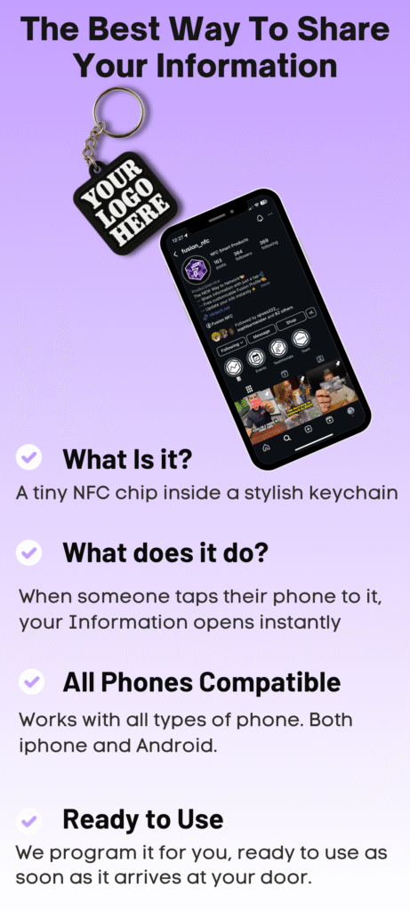 • Instant Instagram Sharing – Tap your keychain against a phone, and your Instagram profile instantly appears. Perfect for networking events, social gatherings, or promoting your brand.