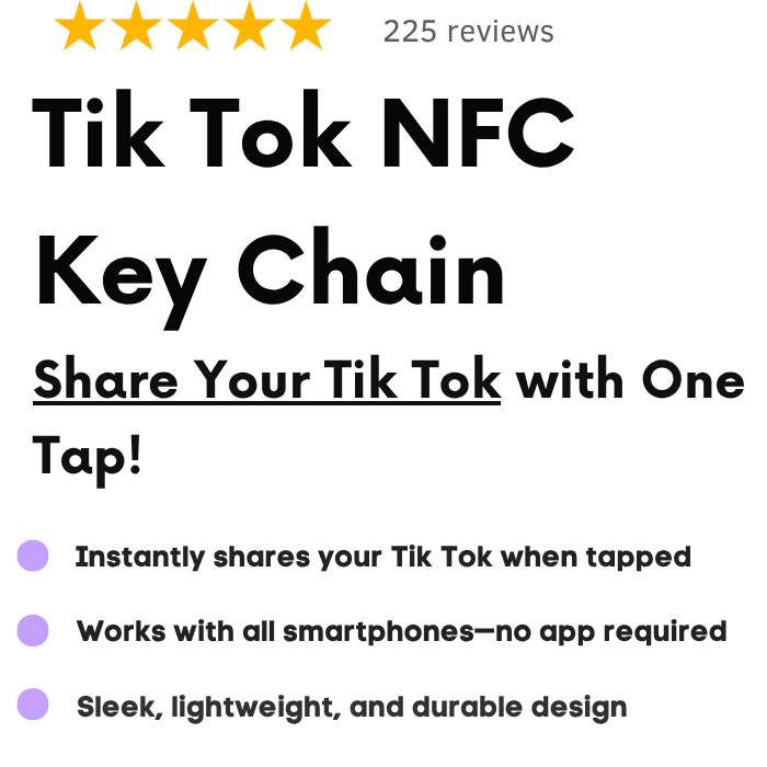 This cutting-edge keychain is embedded with an NFC (Near Field Communication) chip, the same technology used in contactless payments and digital business cards. When you tap your NFC keychain against a compatible smartphone, it instantly triggers your Tik Tok profile to open on their device. The recipient doesn’t need an app or special settings